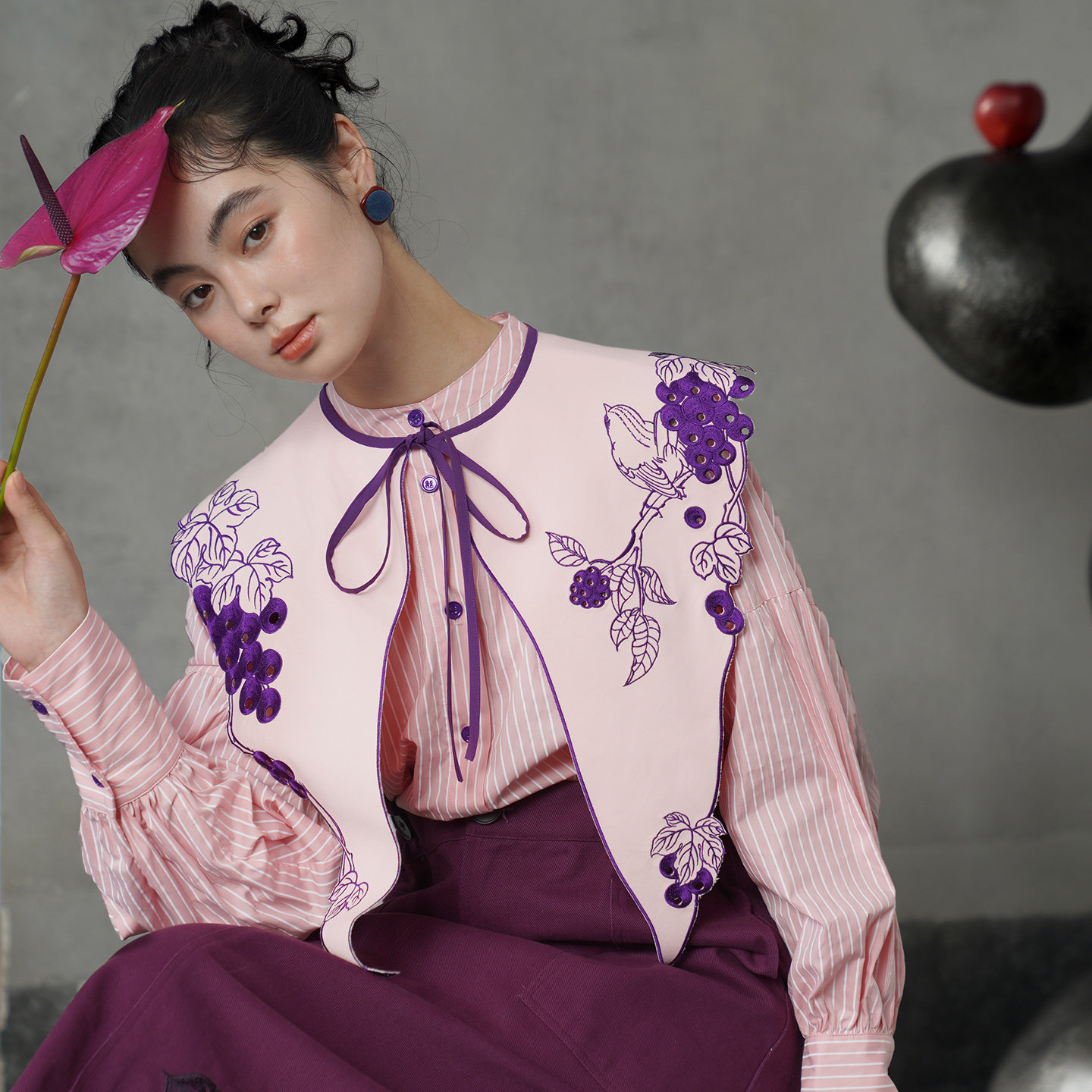 少女粉紅襯衫 女孩粉紅襯衫 + 葡萄紫