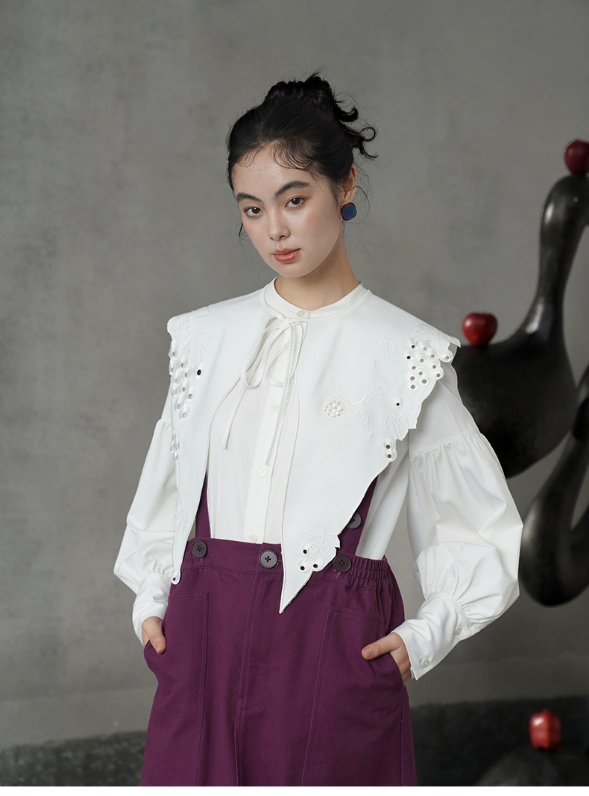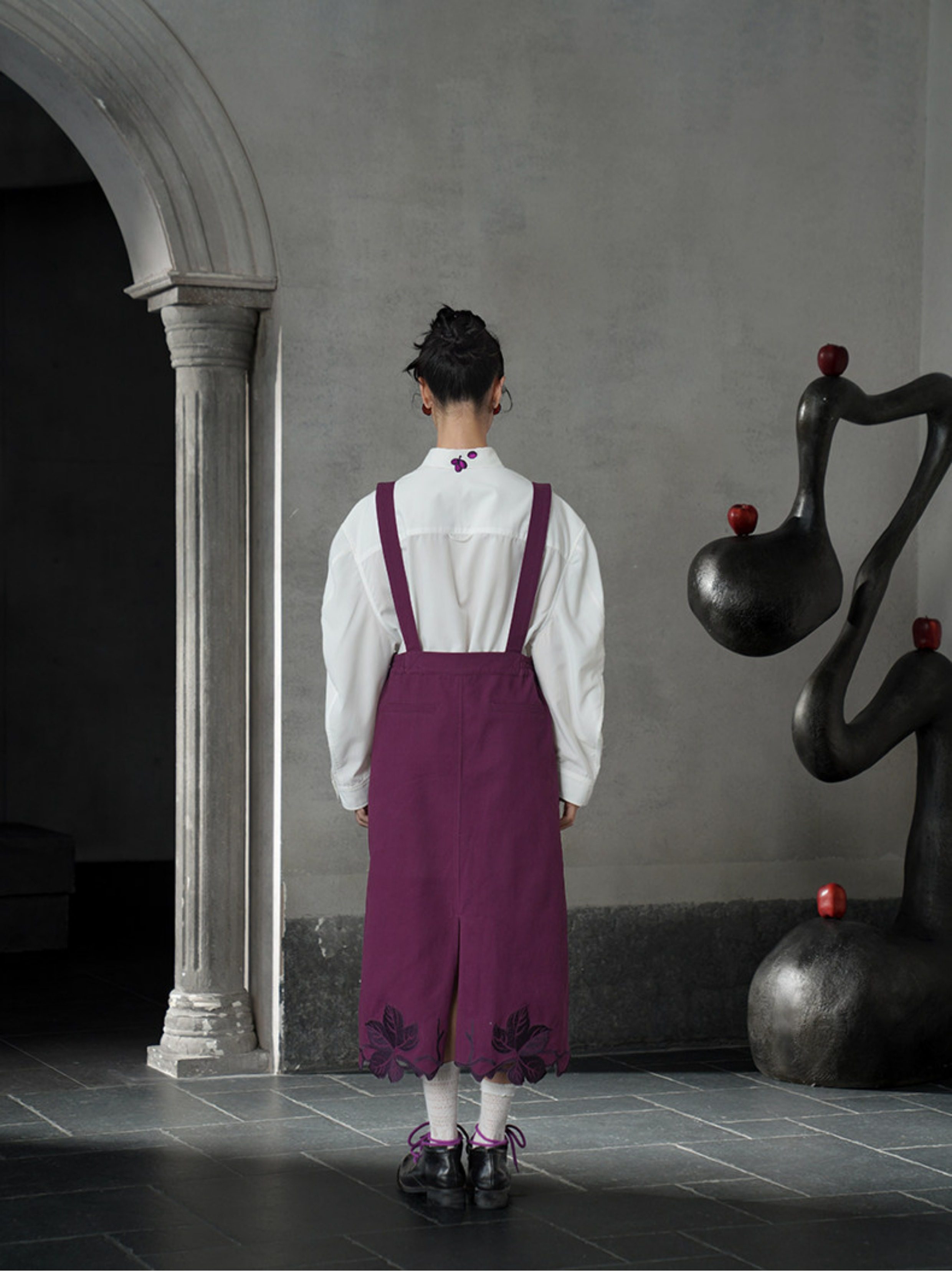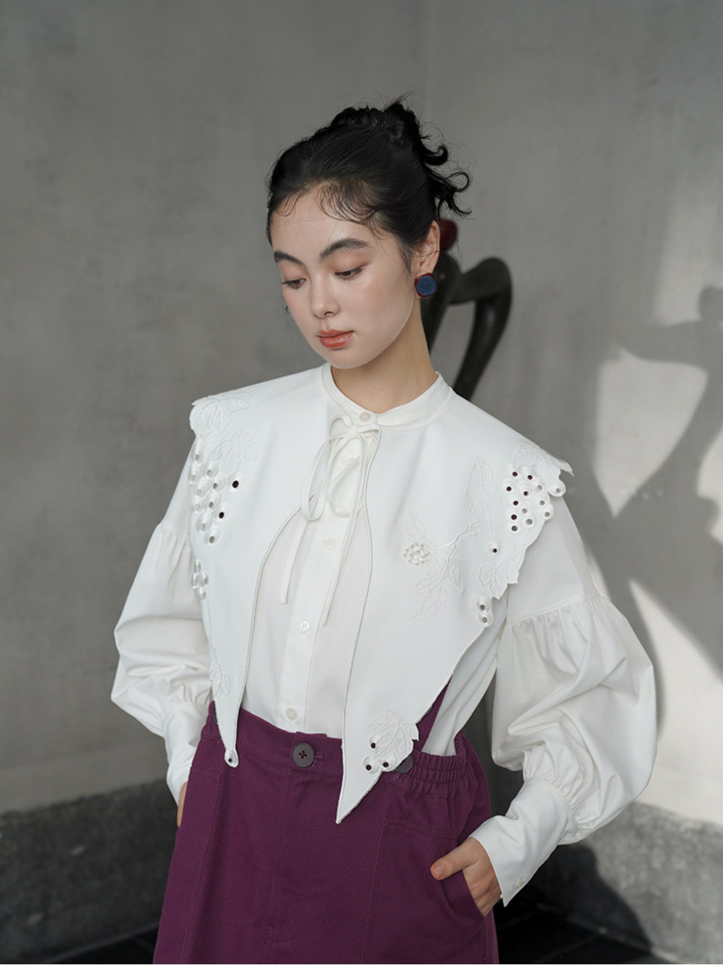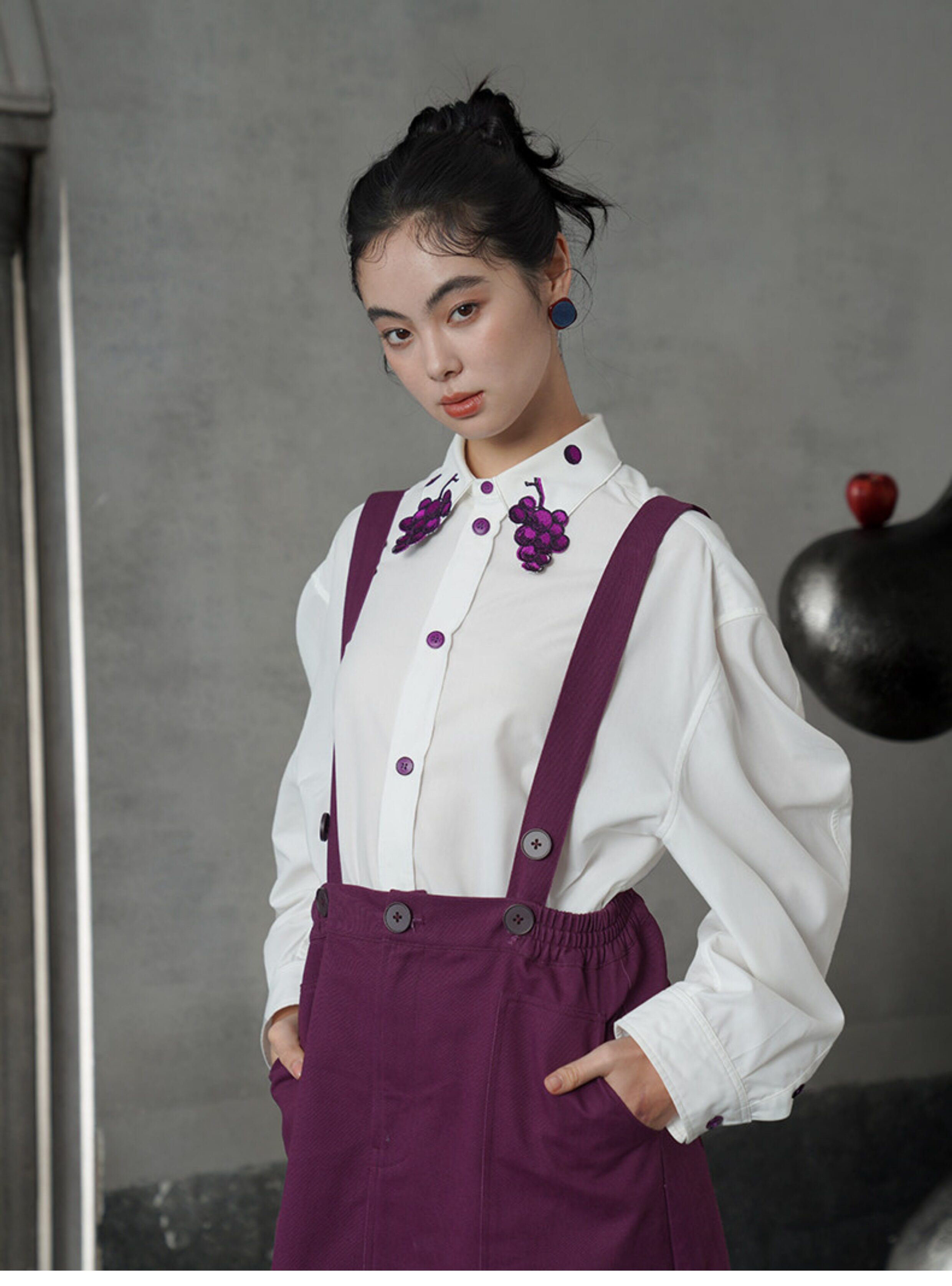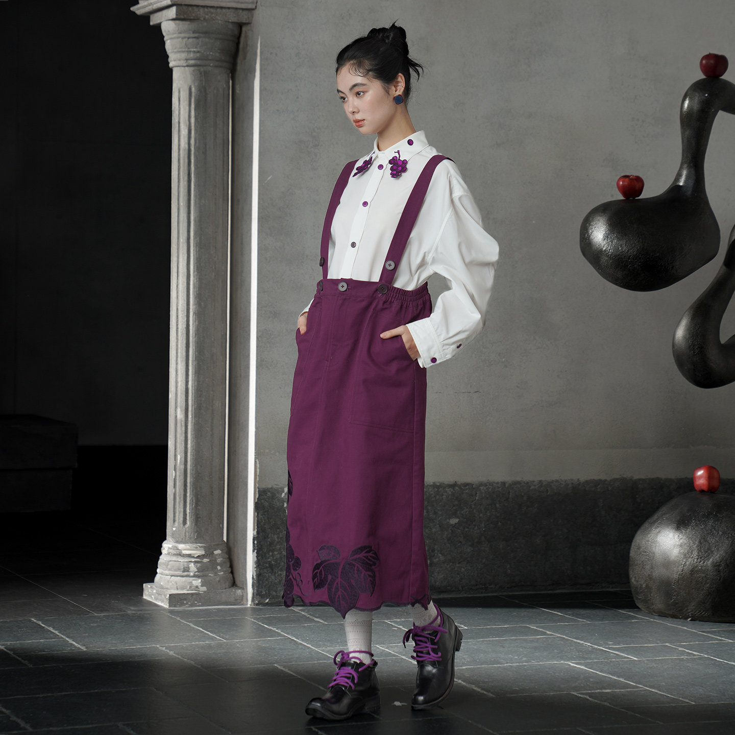 它採用略帶立體感的棉質面料製成,下擺處的葡萄藤刺繡會隨著穿著者的動作而舒展開來,彷彿被風吹動一般。