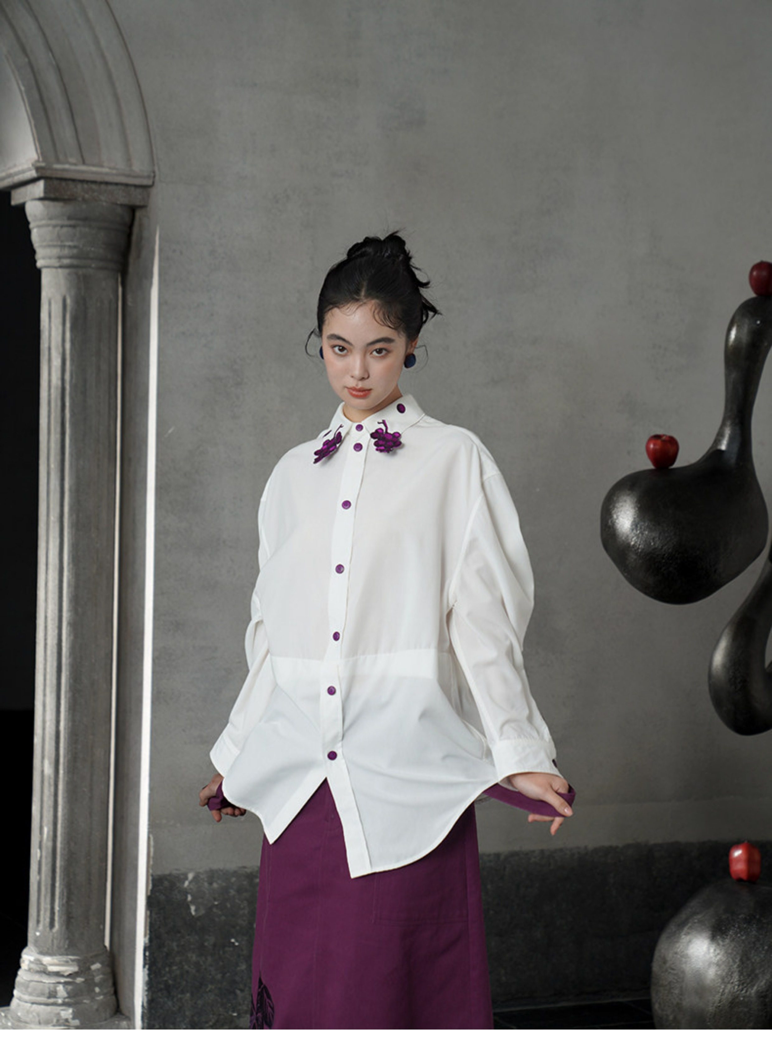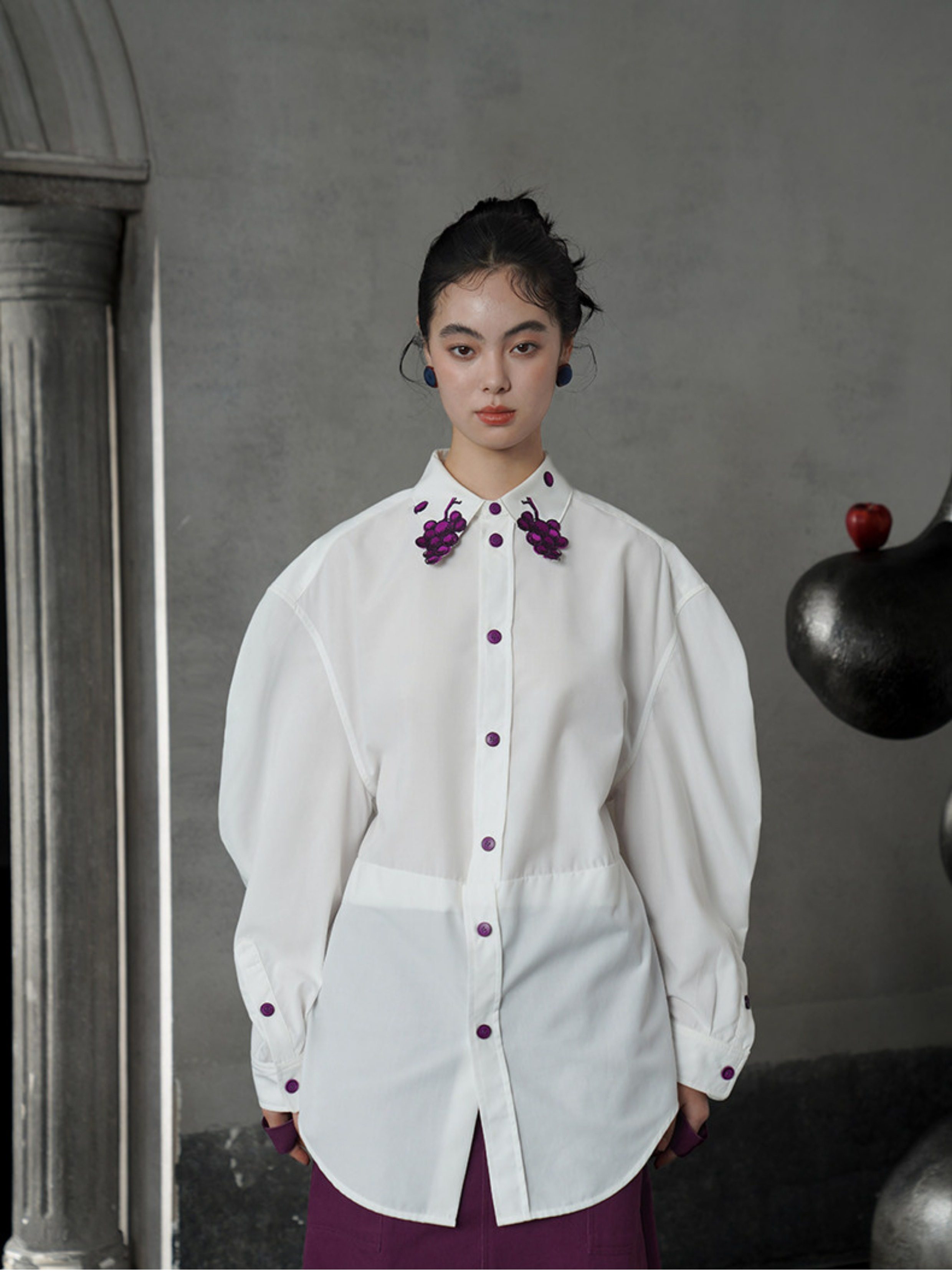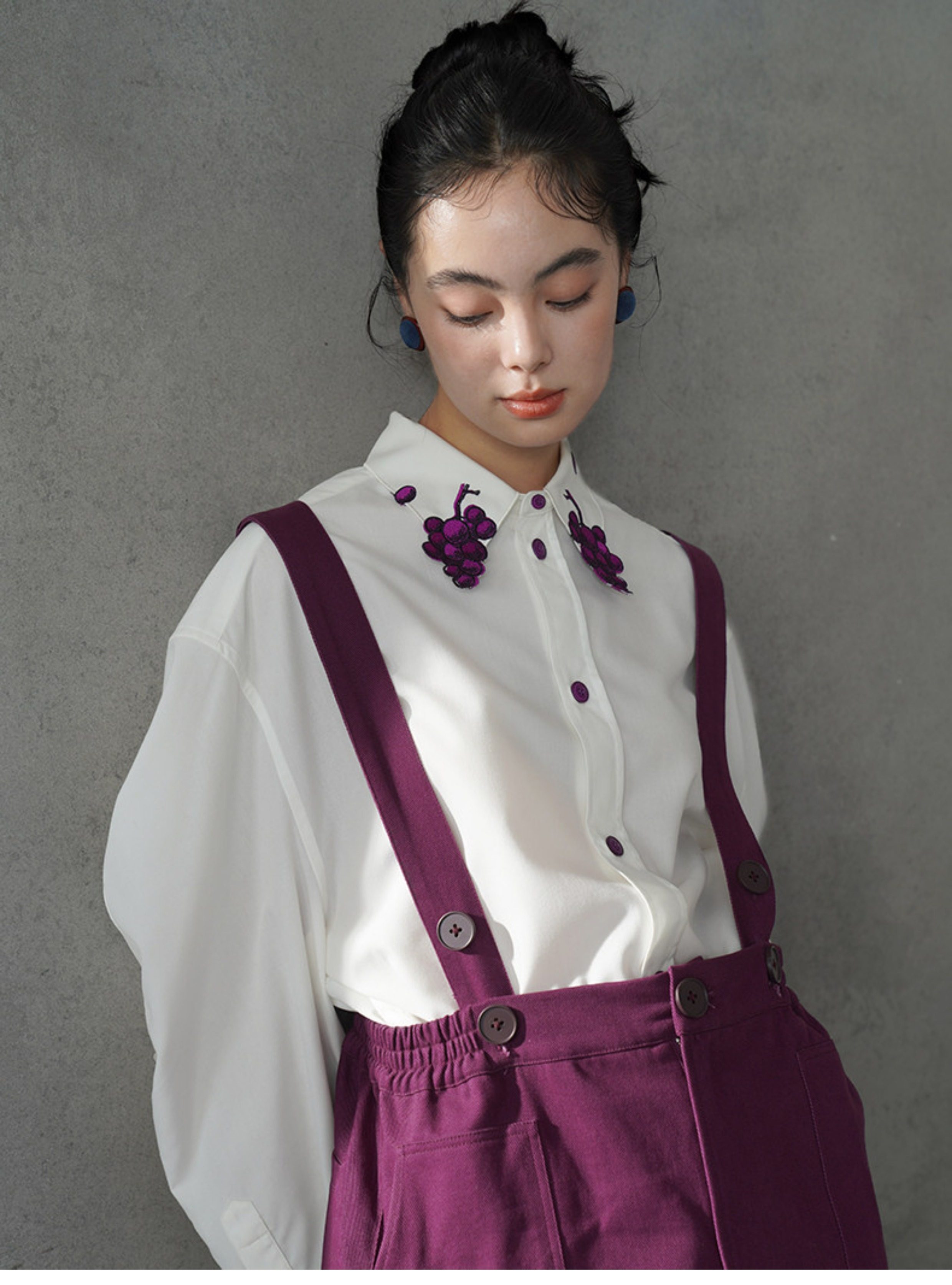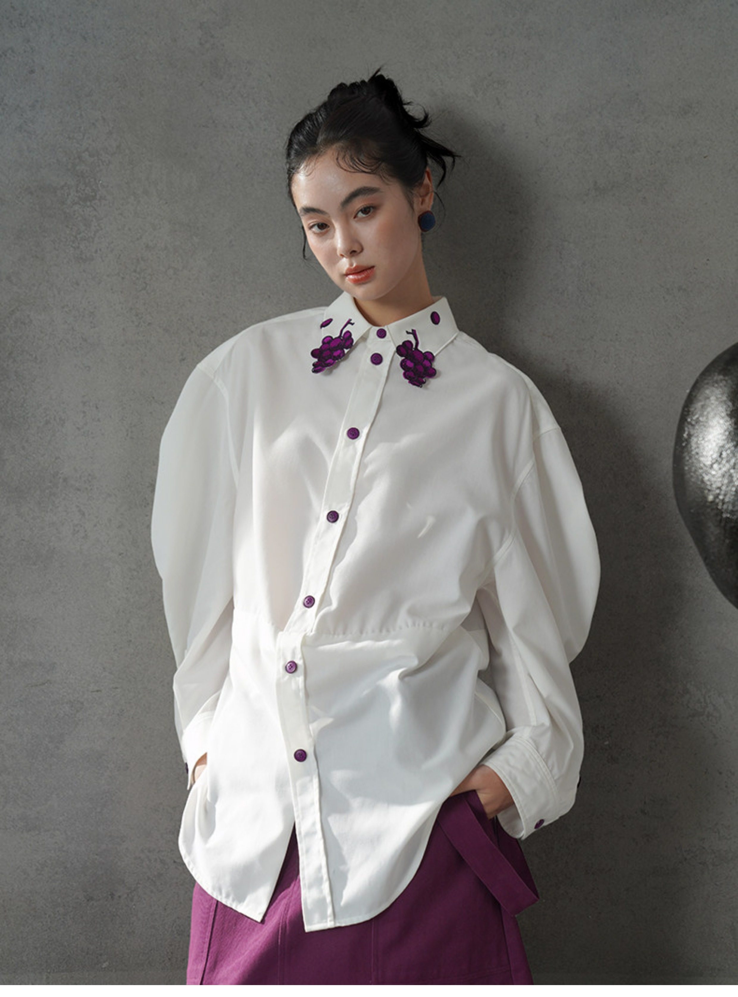 葡萄紫刺繡白襯衫 B4617